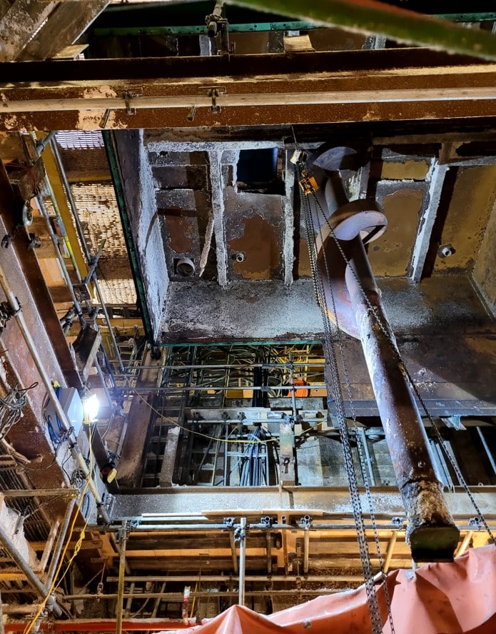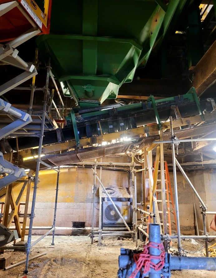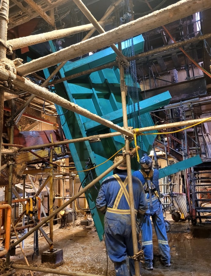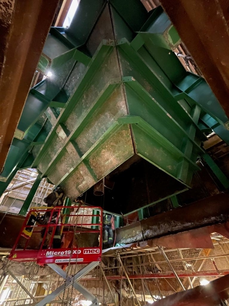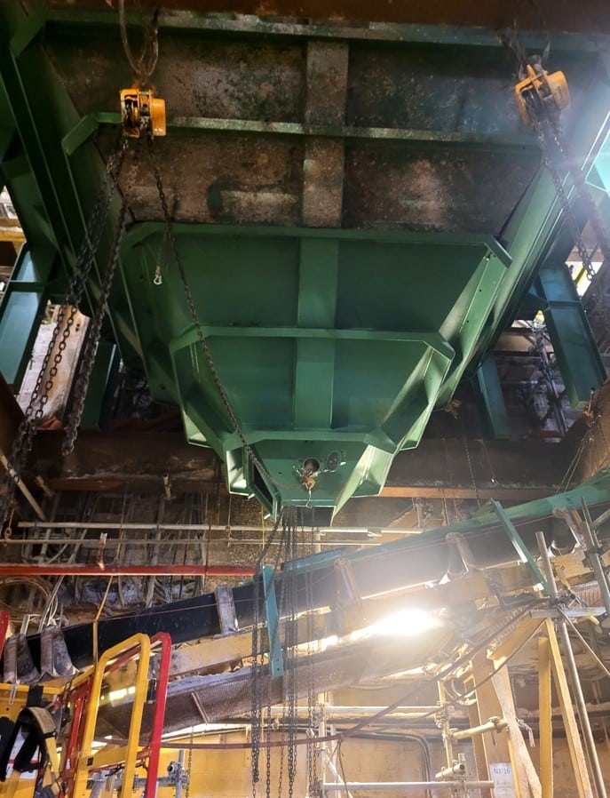 In 2023, SEC was awarded a critical path turnaround project for the replacement of our client’s coarse ore bin. SEC completed the welding & installation of the new bin flange pre shutdown so that the accelerated installation timeline could be met. During shutdown, the existing bin was demolished in sections and the new bin was installed in five different sections. Once the new sections were in place, all welding and touch up painting was completed, and the dust skirting was installed before being turned back over to our client within the required shutdown window.