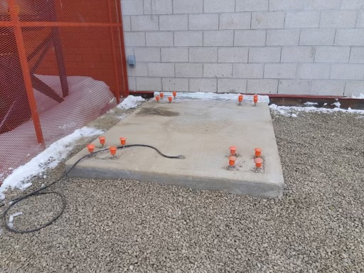 Supply and install all items required to complete a 5’x10’ concrete pad to hold a make up air unit including: